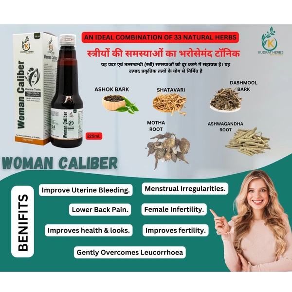 Woman caliber uterine tonic is a type of herbal remedy that can provide a variety of benefits for women's health, particularly related to the health of the reproductive system. Some of the potential benefits of uterine tonic include: Regulating menstrual cycles: Uterine tonics may help regulate menstrual cycles and relieve symptoms of irregular periods, such as heavy bleeding, cramping, and bloating. Boosting fertility: These tonics can help promote a healthy environment for conception by improving blood flow to the uterus and ovaries, regulating hormonal imbalances, and reducing inflammation. Supporting pregnancy: Uterine tonics may help strengthen the uterus and prevent miscarriage by promoting uterine contractions, supporting healthy fetal development, and improving overall maternal health. Improving postpartum recovery: These tonics may help speed up the healing process after childbirth, reducing the risk of infection, and promoting healthy uterine contractions to help expel any remaining placental tissue. Relieving symptoms of menopause: Uterine tonics may help alleviate symptoms of menopause, such as hot flashes, night sweats, vaginal dryness, and mood swings, by balancing hormones and supporting overall reproductive health.